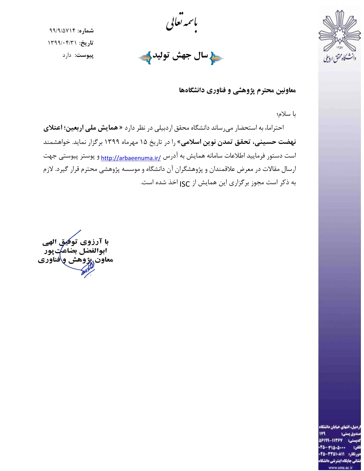 آدرس سایت همایش: http://arbaeenuma.ir/fa/