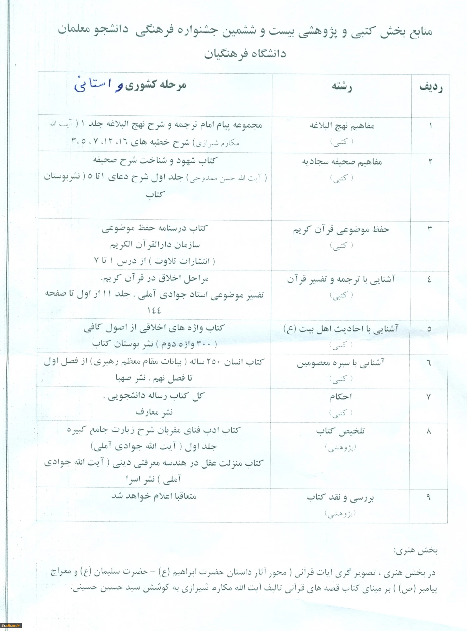 منابع سی امین دوره مسابقات فرهنگی هنری