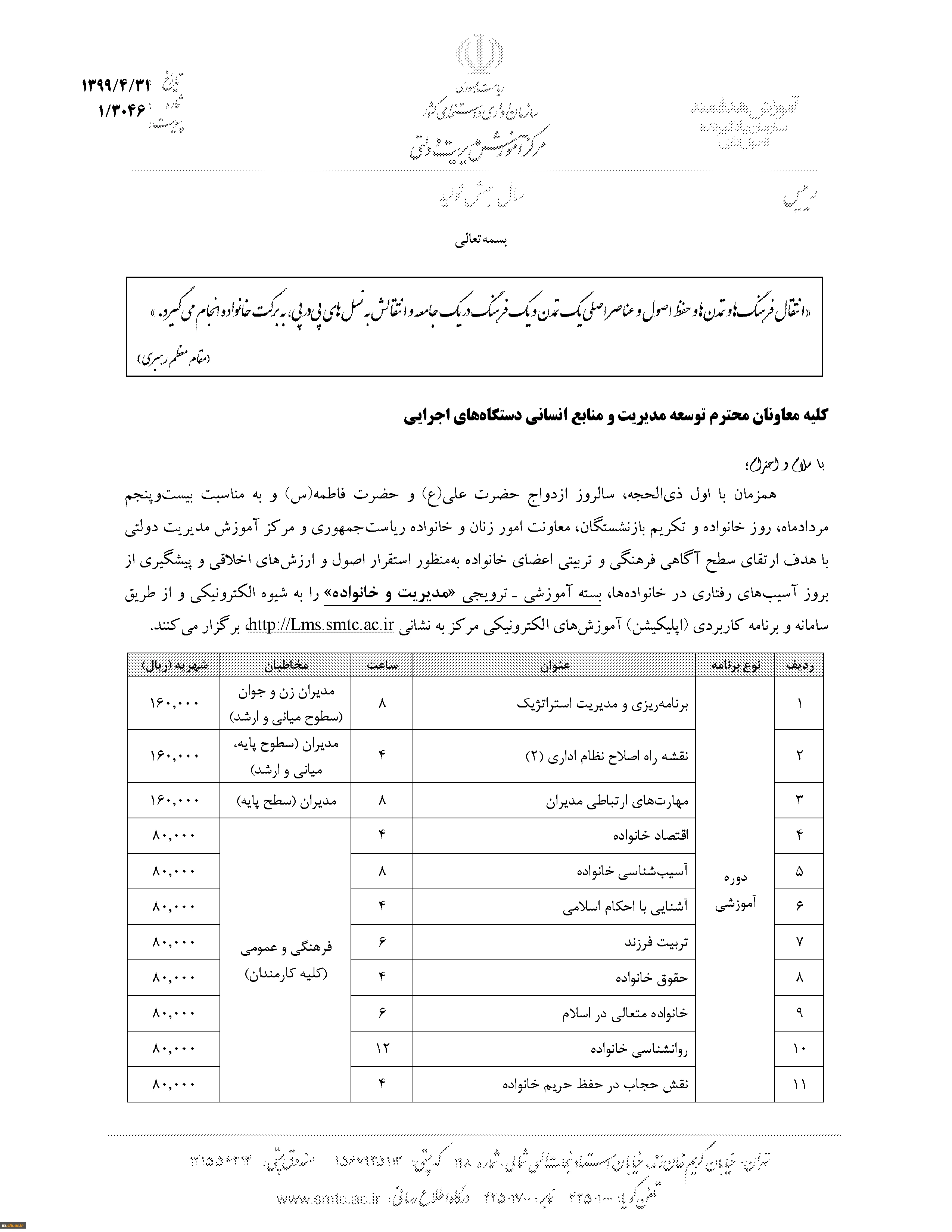 امتیاز دهید : دوره آموزش خانواده ویژه دانشجو معلمان و اعضای هیات علمی 5 چهارشنبه 29 مرداد 1399 ساعت 14:03