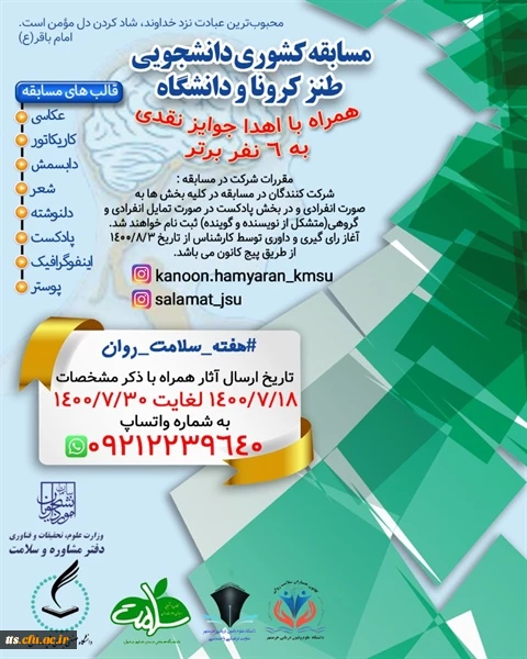 مسابقه دانشجویی کشوری طنز کرونا و دانشگاه- پویش تولید محتوای دیداری و شنیداری همیاران سلامت 3