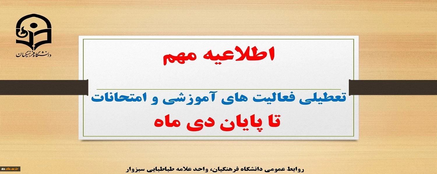 تعطیلی فعالیت های آموزشی و امتحانات تا پایان دی ماه 2
