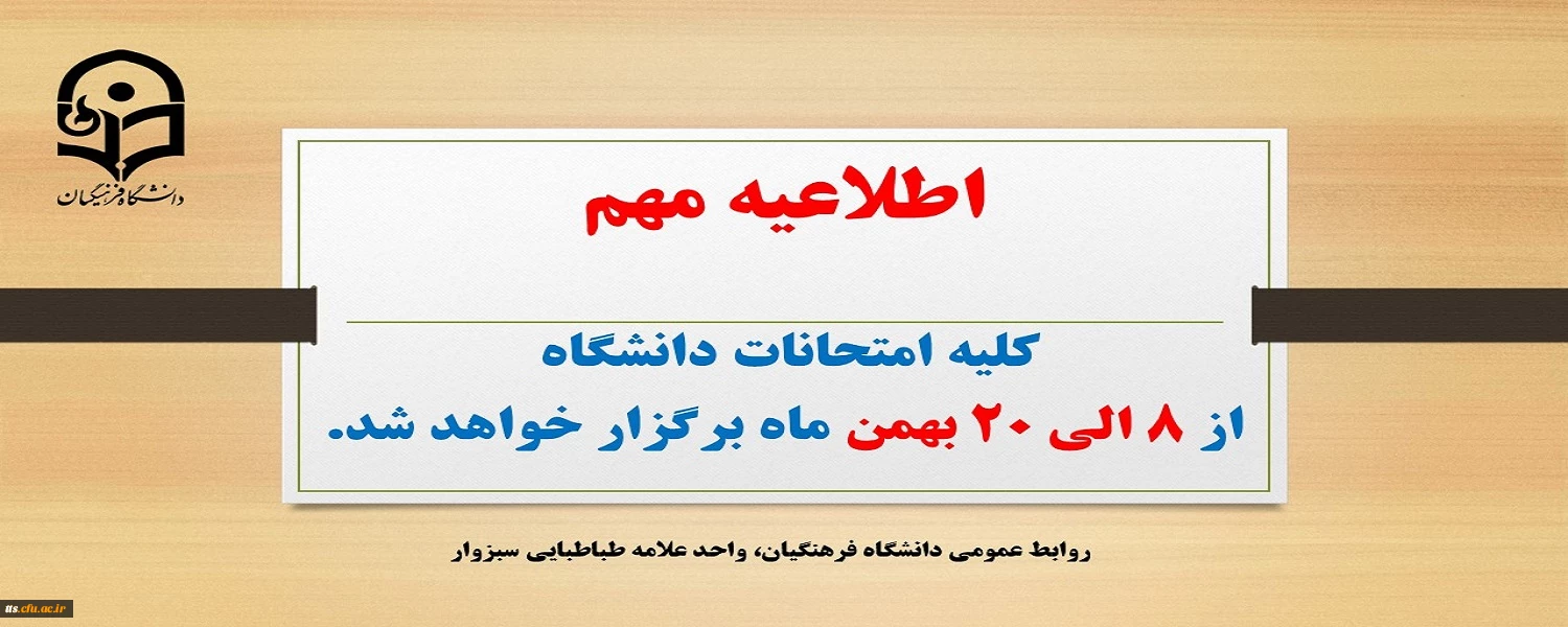امتیاز دهید : تغییر زمان برگزاری امتحانات پایانی نیمسال اول سال تحصیلی ۱۴۰۲-۱۴۰۱ 2 چهارشنبه 28 دی 1401 ساعت 17:40